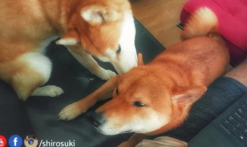 シロは「重すぎてもうポーズ決めてられない!」とでも言ってるのかな。